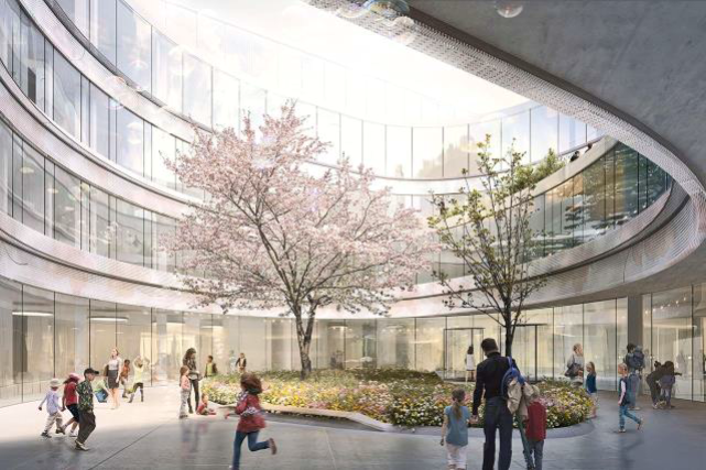 Die kompakte Struktur des neuen Gebäudes, entworfen vom Münchner Architektenbüro Nickl & Partner, ermöglicht kurze Wege für Patientinnen, Patienten und Mitarbeitende. Die enge Verzahnung der Fachdisziplinen fördert den schnellen Austausch und trägt zur bestmöglichen Behandlung komplexer Krankheitsbilder bei. Patientenbereiche sind eng mit Forschung, Lehre und Ausbildung verknüpft. Im ersten Stock entstehen moderne Labore und Seminarräume, im Erdgeschoss ein Hörsaal. Offene Flächen mit Spiel- und Aufent-haltsbereichen sowie eine Cafeteria mit Innen- und Außenbereich schaffen eine familien-freundliche Umgebung. Vier Innenhöfe sorgen für viel Tageslicht und eine positive Atmosphäre für Kinder, Jugendliche und ihre Familien – ein zentraler Aspekt der Healing Architecture.